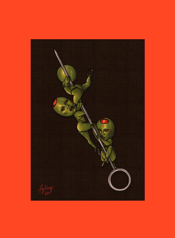 A dark room, smooth jazz playing, rich velour seating, smoky atmosphere and a very dirty martini… This was digitally illustrated Procreate on an iPad Pro, using an array of brushes that mimic my markers and techniques. The canvas was originally drawn on A4 but prints beautifully as A3 also. Archival print includes a care guide with tips on how to care for fine art along with name, exact size and edition.