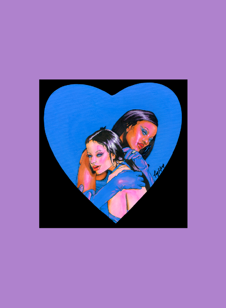 BI ERASURE. This portrait was drawn with lots of passion, acrylic, rhinestone, fine liners and alcohol markers using a nude, pink and sticky blue palette. Archival prints includes a care guide with tips on how to care for fine art along with name, exact size and edition.