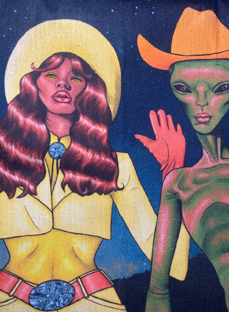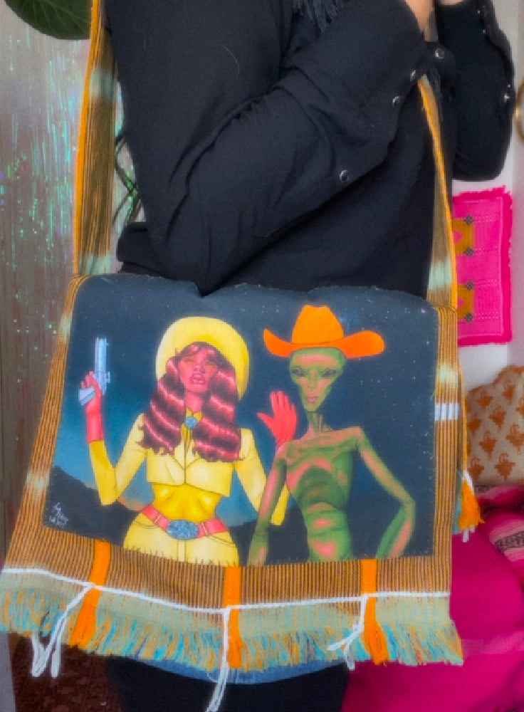 They can be dressed up or down and they are one of a kind, each one will pretty much be different. From the uniqueness of the art to the fabric, this bag will definitely be a statement piece in your wardrobe!