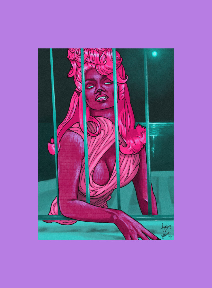 This was digitally illustrated Procreate on an iPad Pro, using an array of brushes that mimic my markers and techniques with a 3 colored palette of teals, hot pinks and hints of lilac. The canvas was originally drawn on A4 but prints beautifully as A3 also.